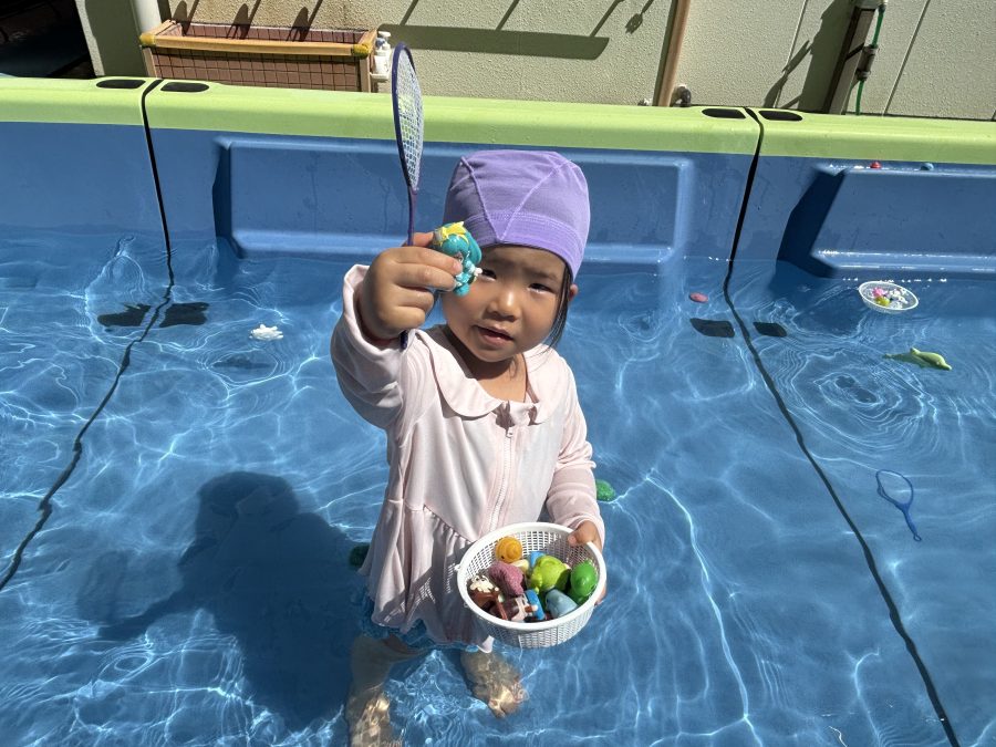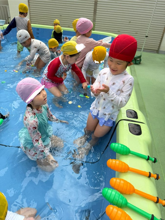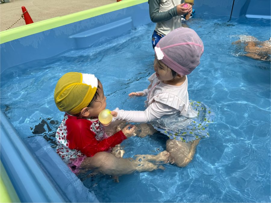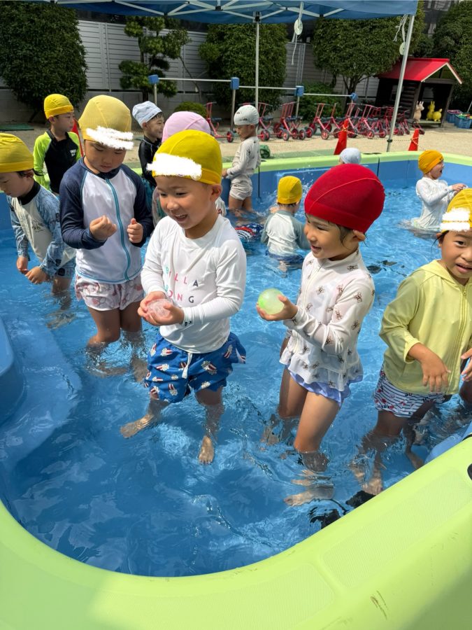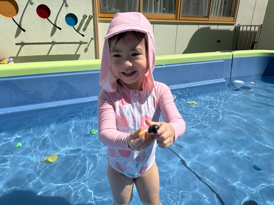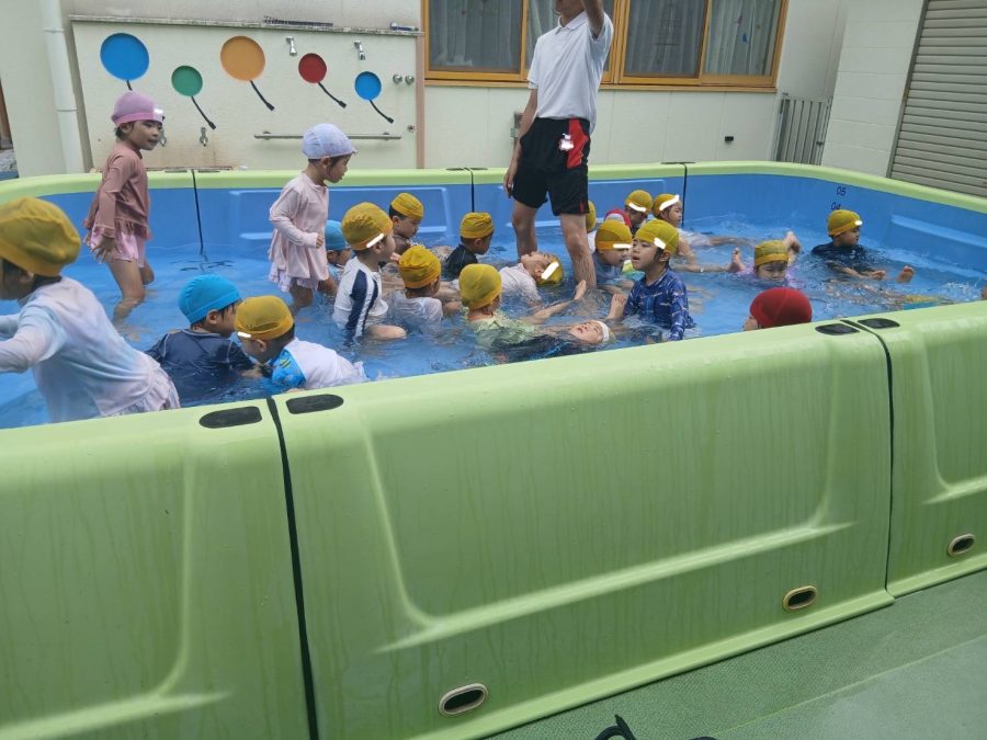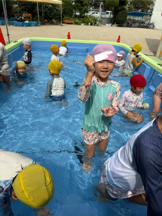 また、金曜日に台風が近づくとのことで、木曜日はプール自体が最後だろうと、赤組、桃組が合同で賑やかにプールを楽しみました!