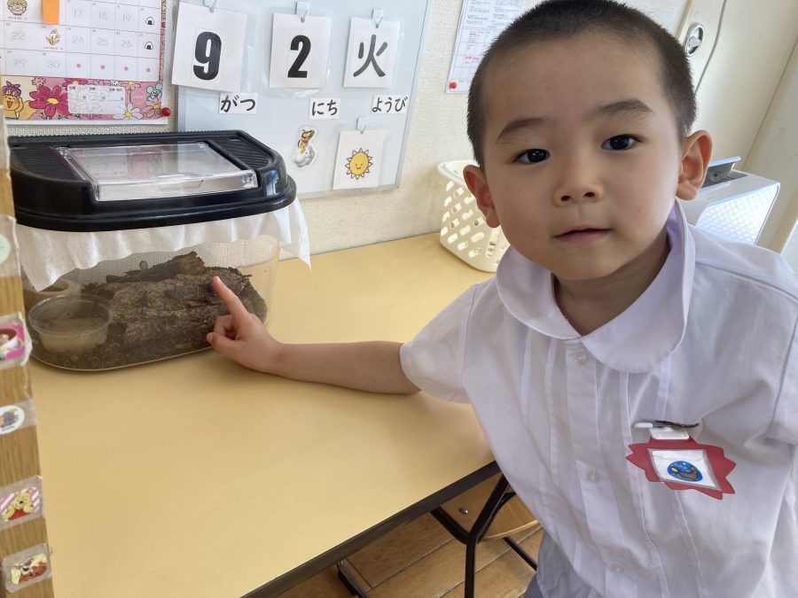 また、夏休み中は担任の家で預かっていた鈴虫を赤組に持ってきました。もうすっかり皆成虫で、リーンリーン!と鳴いています。