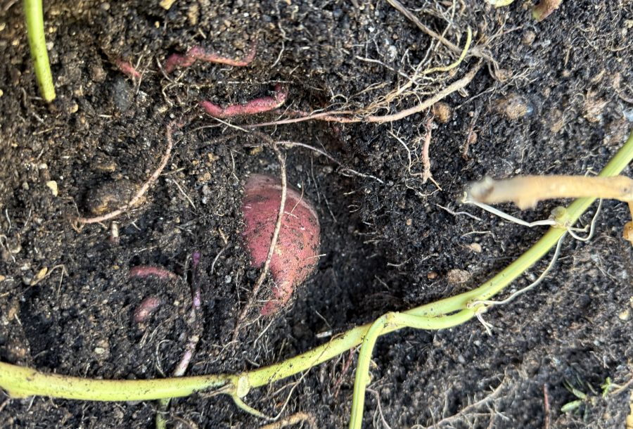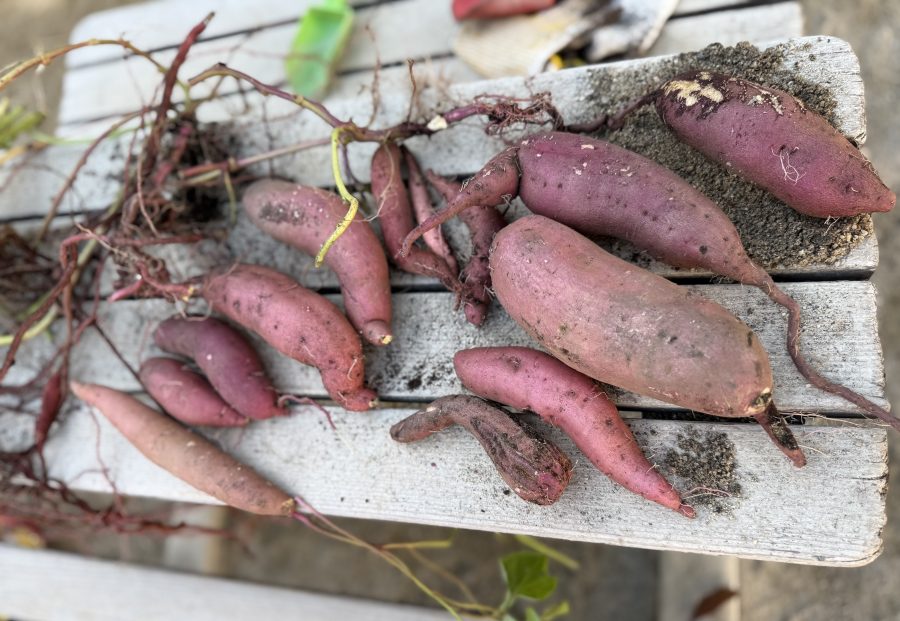 さつまいも部分は、赤と青の絵の具を混ぜて