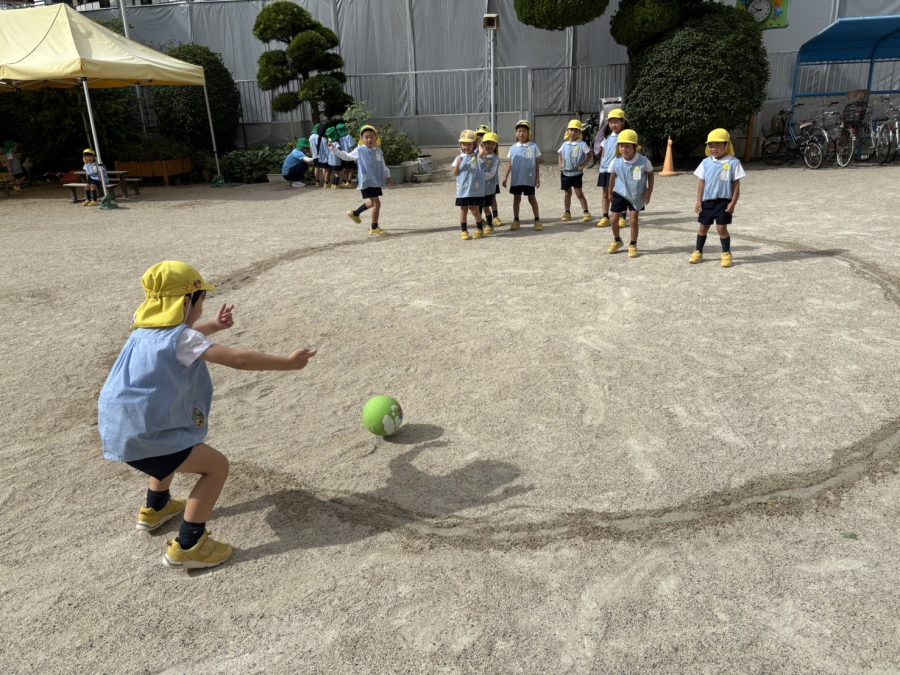 さて、本日の外遊びで転がしドッヂをしました🏀