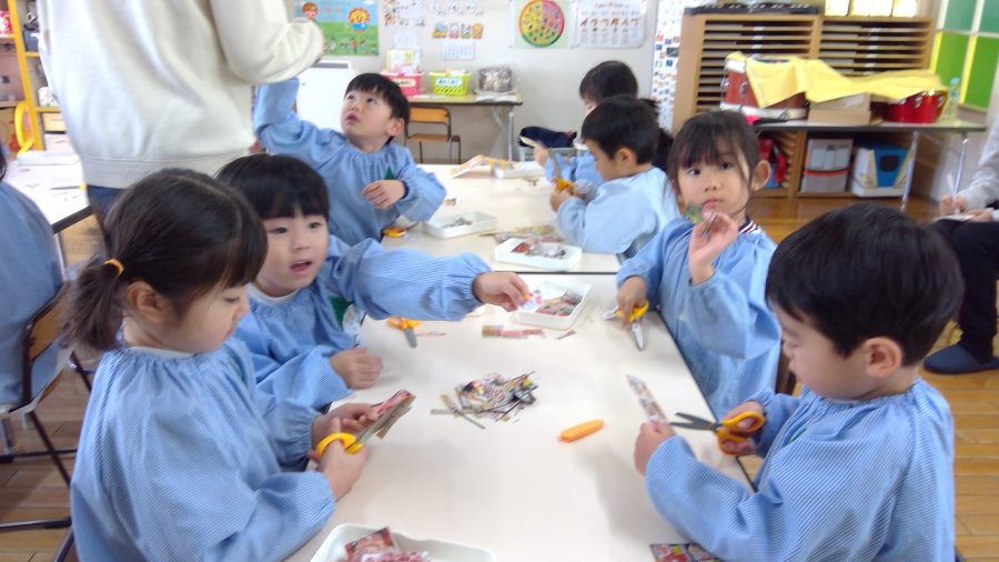 制作で切る色紙や画用紙よりも薄い広告は、切りにくそうでしたが、