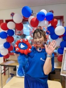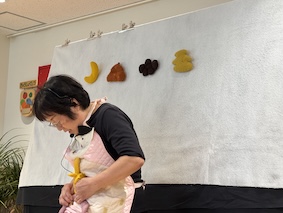 ゆか先生は、おもちゃのワミーを使ってミャクミャクになりきっていたり