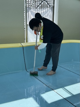 子どもたちが頑張ったあとは、木村さんに仕上げをしていただきキラキラと輝くプールに蘇りました✨