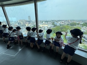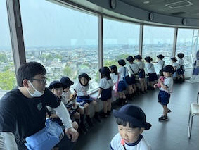 展望台からは、明石海峡大橋、電車、バスに近くの小学校や幼稚園で元気に遊ぶ子どもたちの姿も見えました。