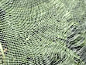 早速畑に行き、小松菜のネットをのぞいてみると…確かに!虫食いされてる〜!
