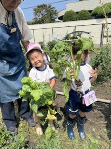 暑い日でしたが、子どもたち小松菜に夢中で収穫がんばりました!