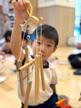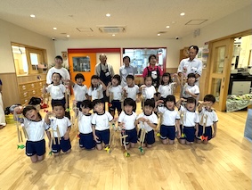 あかねヶ丘のみなさまが来園してくださり、素敵な夏のプレゼント「竹風鈴」をいただきました!