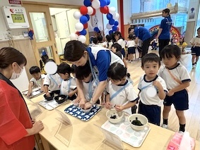 幼児クラスのパビリオンでは、楽しいゲームを考えてくれました。