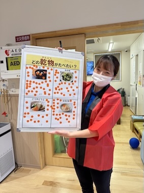 栄養士の提案で、普段はカタイ乾物と水に戻した乾物を触り比べできます!