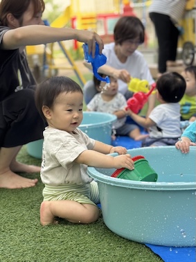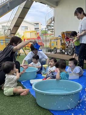 ぜひお家でも気温や場所など、無理のない範囲でお子さんのペースに合わせて、大人の皆様も一緒に水遊びを楽しんでみてくださいね。