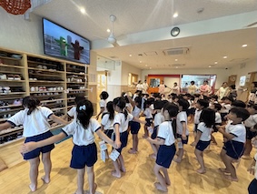 最後は、おいしいスイカを食べたお礼に、みんなでアネックスオリジナル夏ソング「せみのうた」を踊りながら大合唱しました。