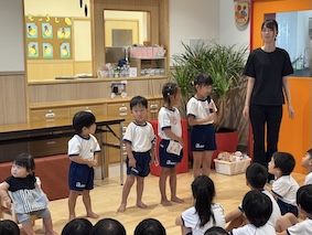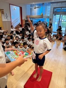 6歳になった年長のお友だちは、トップバッターでしっかり自己紹介ができました!