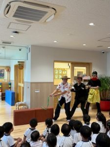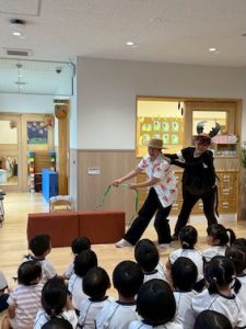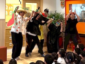 8月先生からのプレゼントは、名作絵本「おおきなかぶ」のオマージュ「おおきなスイカ」の劇でした。