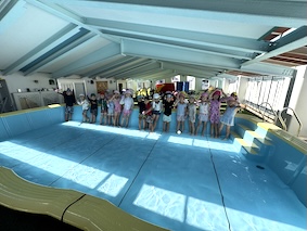 最後は、年長くじら組さんみんなで3年間お世話になったプールへ、感謝のゴシゴシお掃除タイム✨