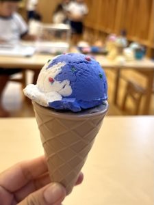 アイスとコーンにマグネットも入っているので、自分のお好みのアイスをコーンやカップにのせて「いらっしゃいませ〜」と小さなキッザニアのような世界観で遊べます🍨