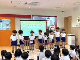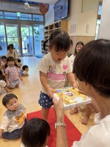 今月は、お誕生日のお友だちが多いので乳児クラスと、幼児クラスに分かれて行いました。