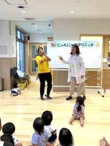 好きな食べ物を聞いてみると、「おやさいです!」「バナナ」「スイカ」と、上手に答えることができて、みんなから大きな拍手をいただきました。