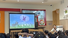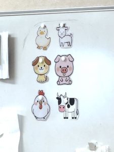 さらに、歌詞に出てくる動物たちのイラストも、お部屋に貼られていて一つずつ順番を確認します。
