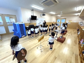 毎日子どもたちの楽器の音や歌が聞こえてきますので、園内みんなで「音楽の秋」を感じています。