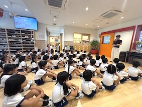「2学期には、発表会・遠足・ハロウィン・クリスマス・餅つきなどなど、楽しいことがたくさんあるので、みんなで楽しみましょう」とお話がありました。