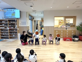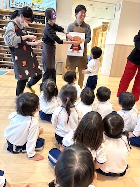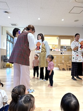 園長先生からプレゼントをもらう時も、全員がしっかりお返事して受け取ることができました。