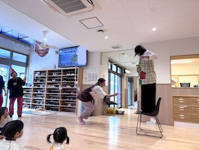 今月は、お家の方に1日保育体験として子どもたちのクラスに入り園での生活を見て頂いている期間です。