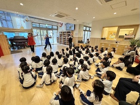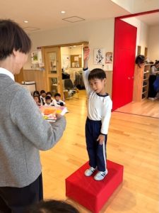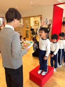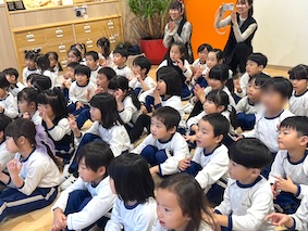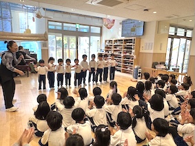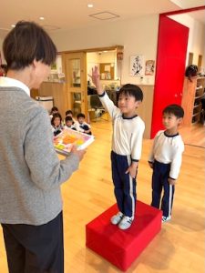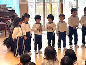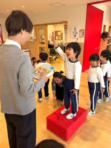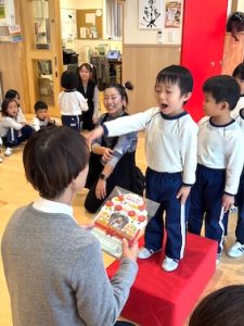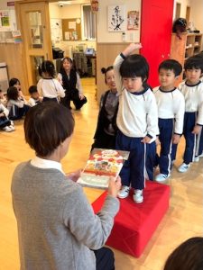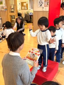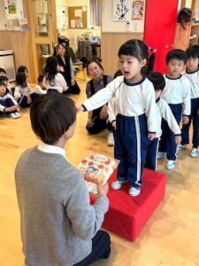 園長先生からのプレゼントタイムでは、大きなお返事!