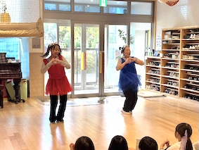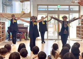 みんなが大好きな「しなこワールド」の曲をキメッキメで踊ってくれて、子どもたちも振り付けを覚えて一緒に手振りで踊りました。