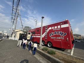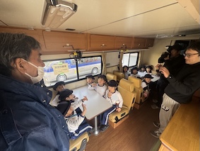 全長10メートル以上もあるこの支援車に乗ると、まずは「キャンピングカーみたい!!」と子どもたちが大興奮♪