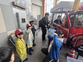 とっても大きな、大きな消防車(支援車)にも乗せてもらえました!