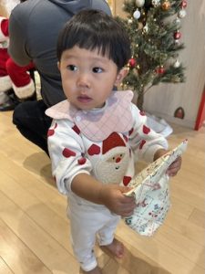 サンタさんから手渡してもらえて、ドキドキと嬉しさいっぱい❤️
