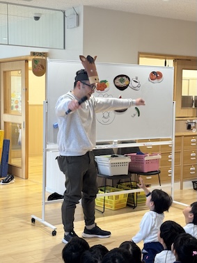 同じく1月生まれの園長先生も登場して、好きな食べ物を聞いてみると園長先生は「お好み焼き」