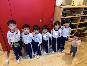 季節違いな服で登場した先生たち、冬でも遊べるあたたかい格好になったところで、いってきまーすと遊びにいってしまいました。笑