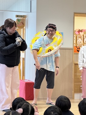 2月は「さむい」「ふゆ」「ゆき」「てぶくろ」「マフラー」「ブーツ」など、冬らしいワードがたくさん登場する楽しい誕生会となりました❄️