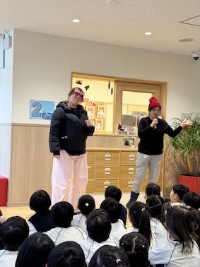 「🎄クリスマスは12月やー!」「🎅サンタさんはおかしいやろ〜」とツッコミも上手な子どもたち。笑