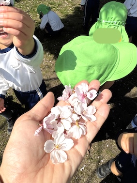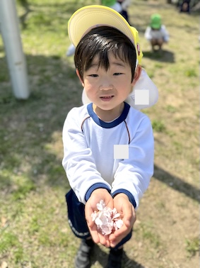 0歳児・ゆりかご組のみんなが、落ち葉ひろいのお手伝いをしてくれましたよ🍂