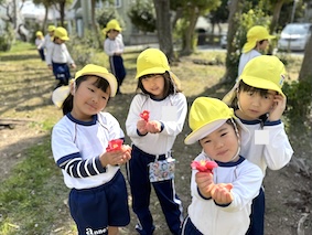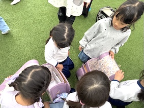 園長先生からプレゼントをもらう時も、全員がしっかりお返事して受け取ることができました。
