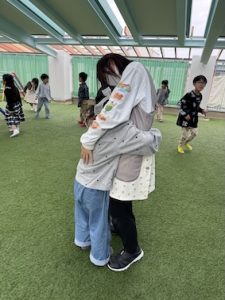 園の中は、子どもたちが快適に過ごせる気温になっていますし、子どもたちが集まると体感室温が2度くらい上がります。笑