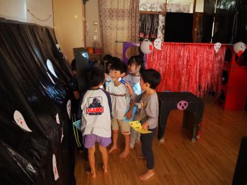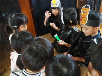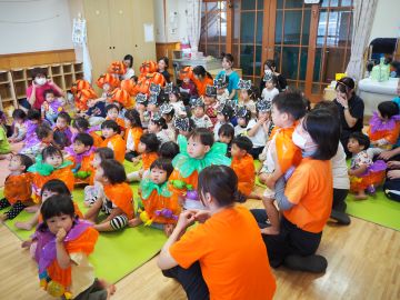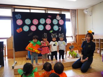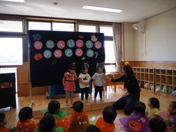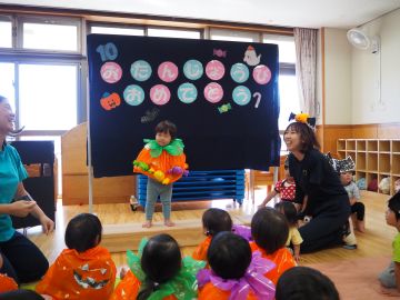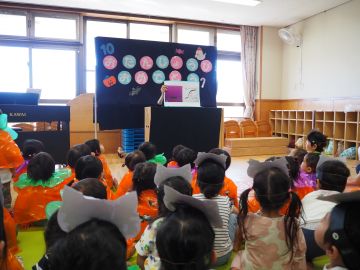「ハロウィンのかくれんぼ」っていう紙芝居を楽しみました。