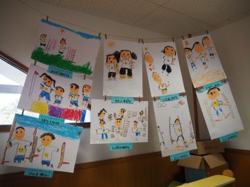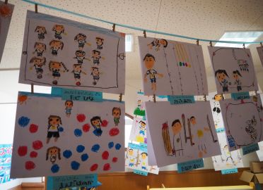 あら。年長組のお部屋の前に体育祭の思い出が♡