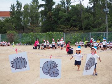 かけっこでダンゴ虫にタッチするようです。