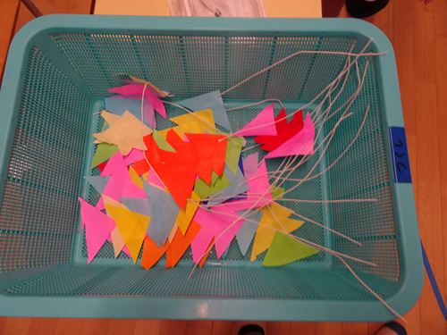 年少さんは七夕伝説のお話を聞いて、笹飾りを作り始めました。