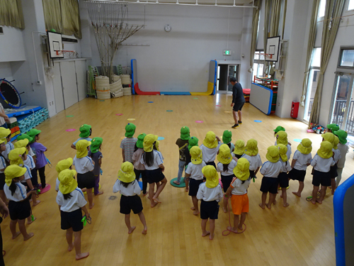年長さんの体育遊びは毎週火曜日にありますが、最後のクラスの時に、運動会シーズンを除き、住吉保育園の年長さんも一緒に参加しています。小学校が一緒になる子もいるかもしれませんね。