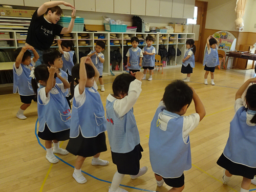 細かい動きより見様見真似で楽しく踊ってくれれば良いですよ。