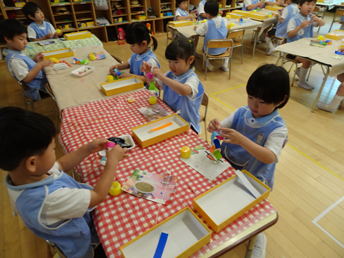 年中さんは笹飾りの輪つなぎを作っていました。