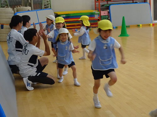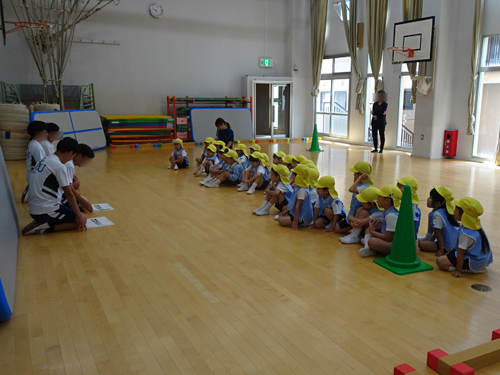 年長さんには中学生のお兄さんが来て運動遊びを企画してくれました。