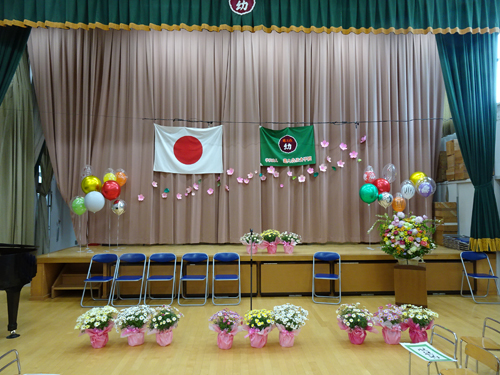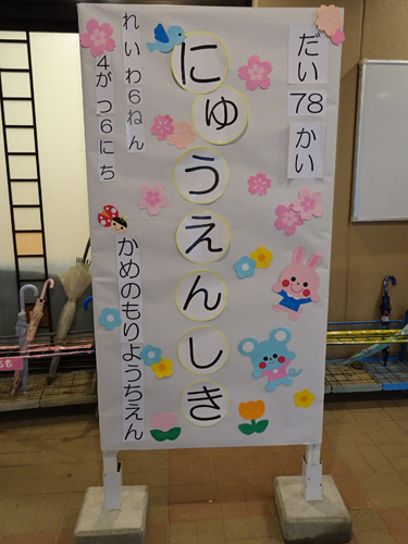 風が強かったので、入園式の看板は玄関ホールでの設置になりましたが、
