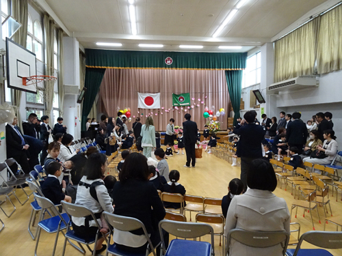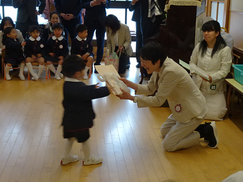 式後、各部屋に移動して、担任の先生からプレゼントや書類を一人一人もらいました。
