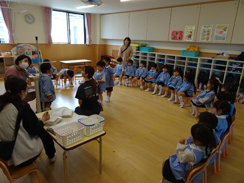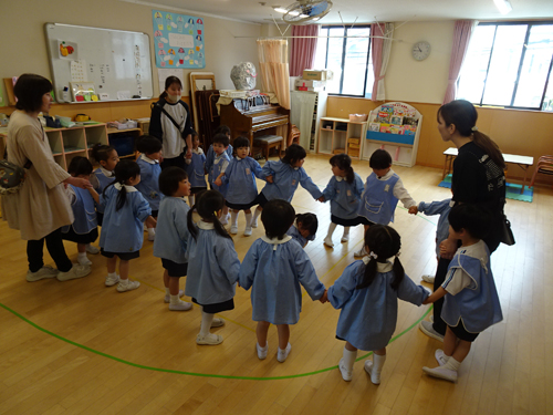 年少さんはわらべうた遊び「もぐらどん」をしたり、