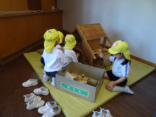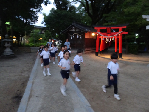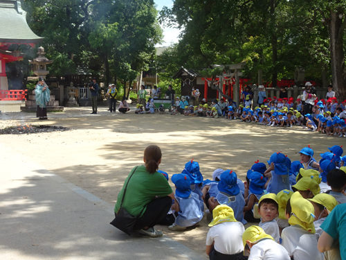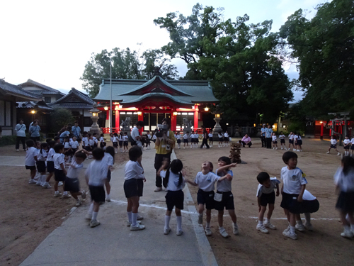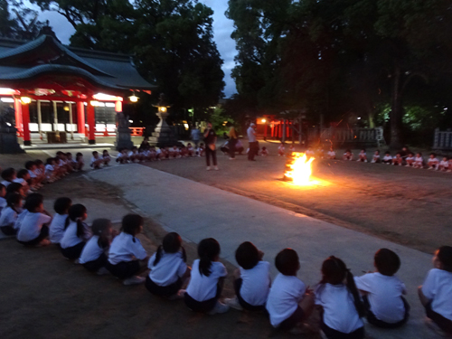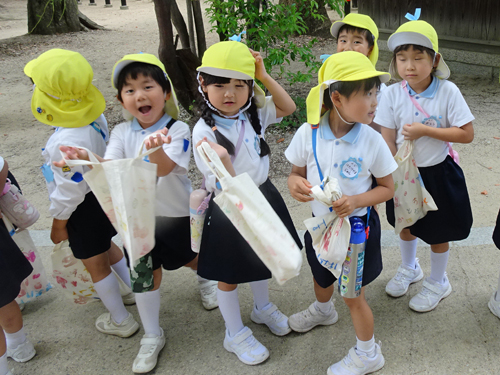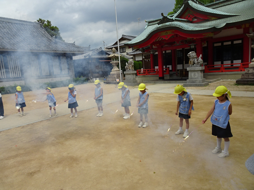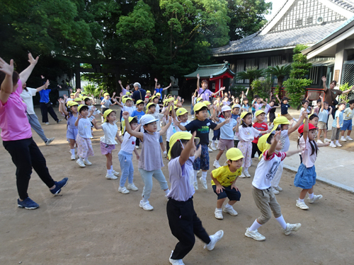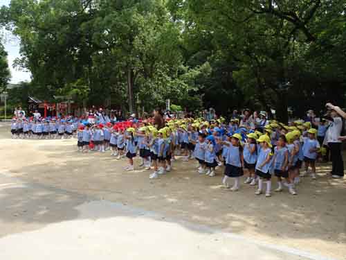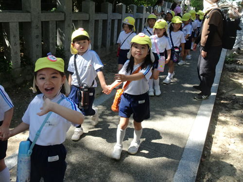 終業式では神社参拝、園長先生のお話、そして、園歌を一番だけ歌いました。